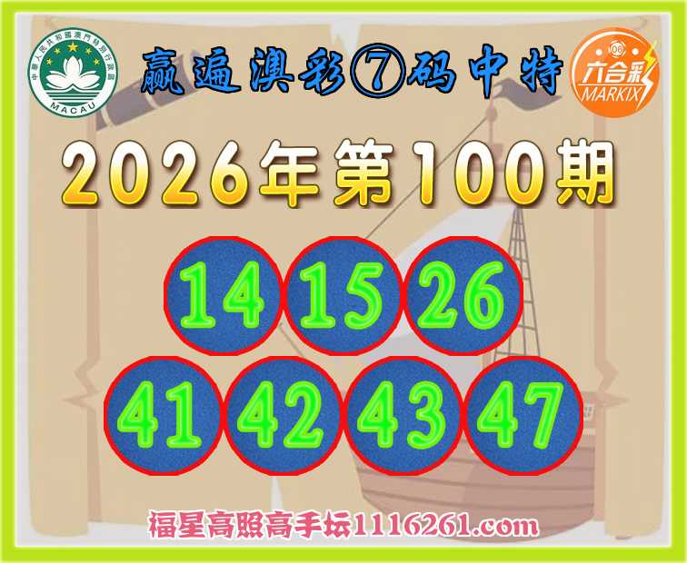 100期:『赢遍澳彩』 🍎⑦码中特🍎【14.15.26.41.42.43.47】开:33