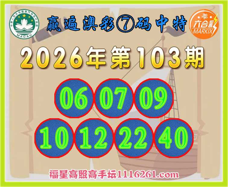 103期:『赢遍澳彩』 🍎⑦码中特🍎【06.07.09.10.12.22.40】开:06