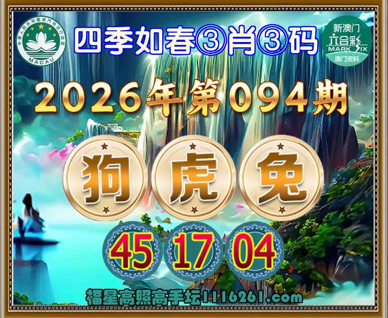 094期: 四季如春 🚣③肖③码🚣【狗兔】【45.17.04】开:虎17