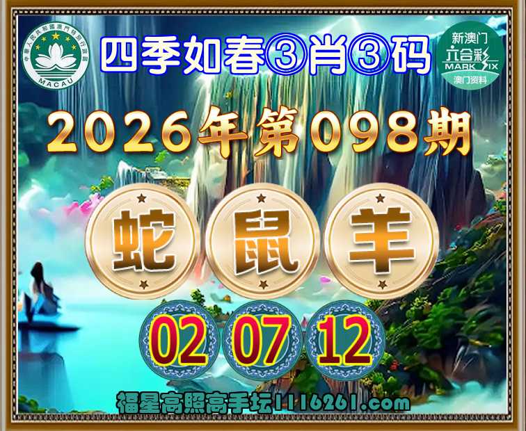 098期: 四季如春 🚣③肖③码🚣【蛇鼠羊】【02.07.12】开:虎17