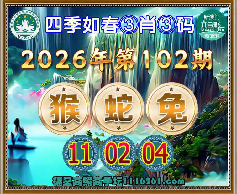 102期: 四季如春 🚣③肖③码🚣【猴蛇兔】【11.02.04】开:猪20