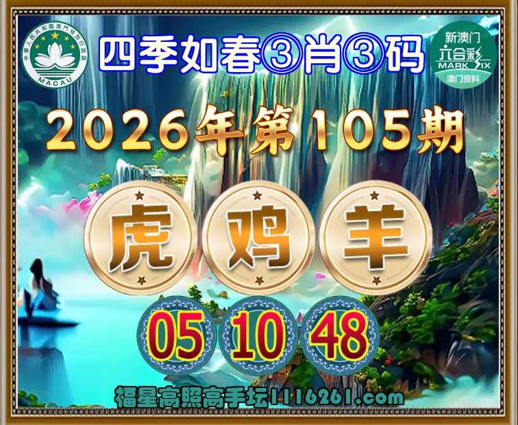 105期: 四季如春 🚣③肖③码🚣【虎鸡羊】【05.10.48】开:兔28