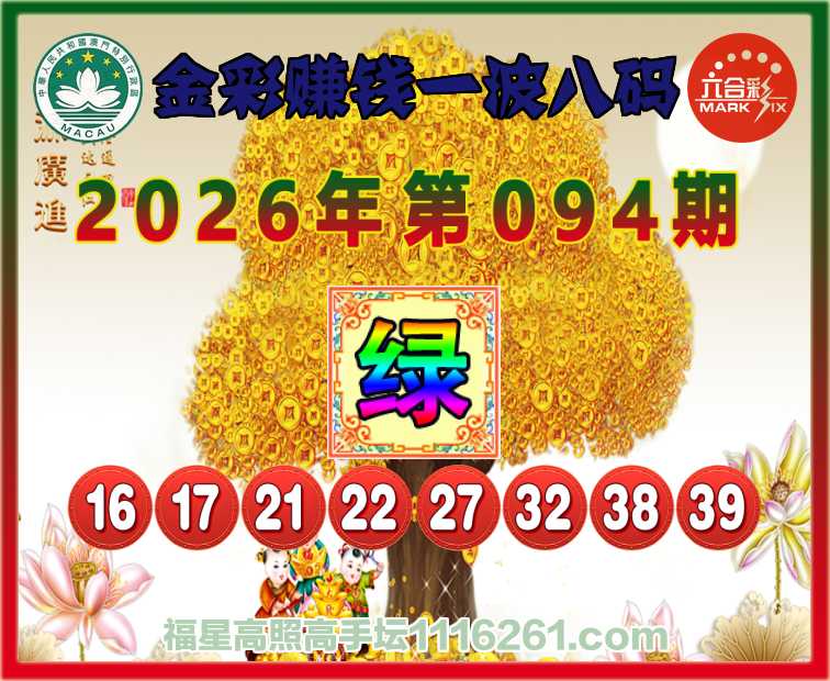 094期: 🌷《金彩赚钱》 🌷一波八码🌷【绿波】开:虎17