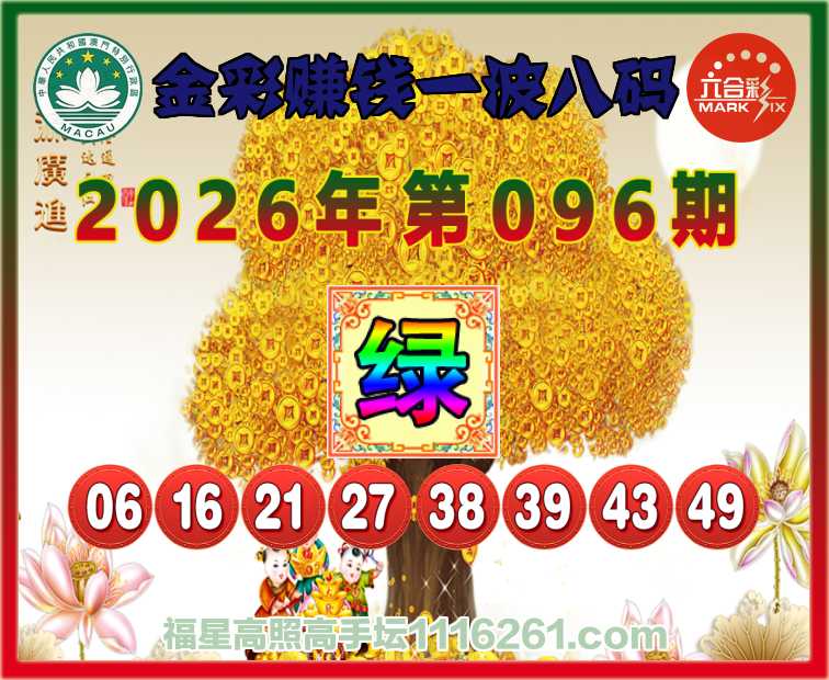 096期: 🌷《金彩赚钱》 🌷一波八码🌷【绿波】开:鼠43