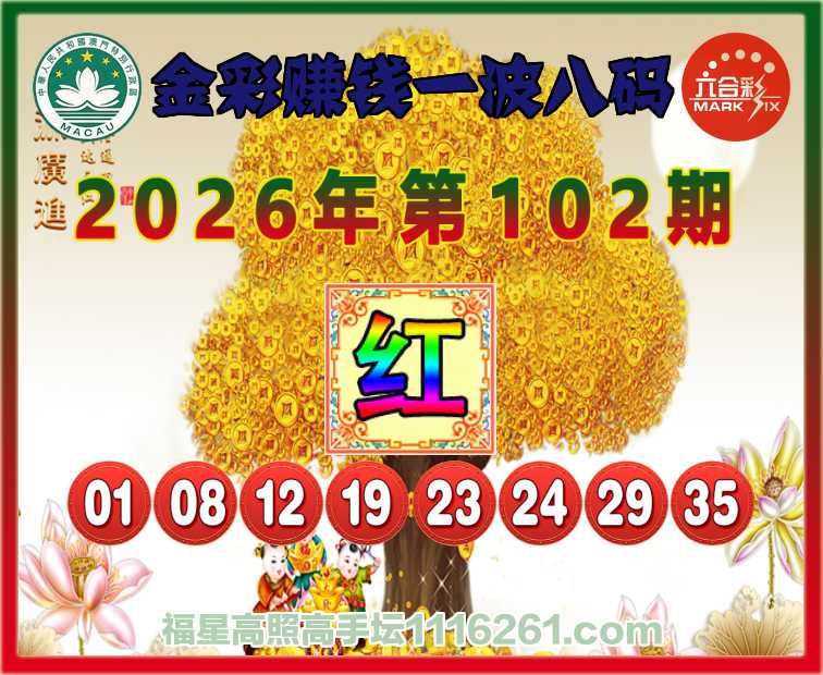 102期: 🌷《金彩赚钱》 🌷一波八码🌷【红波】开:猪20