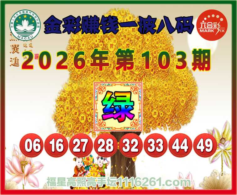 103期: 🌷《金彩赚钱》 🌷一波八码🌷【绿波】开:牛06