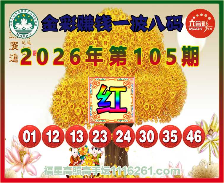 104期: 🌷《金彩赚钱》 🌷一波八码🌷【波】开:马01