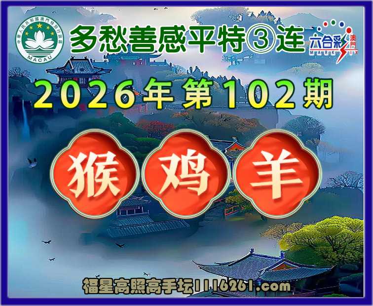 102期:《多愁善感》平特③连⌚【猴鸡羊】开:猴47,鸡46,羊36