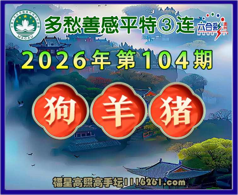 104期:《多愁善感》平特③连⌚【狗羊猪】开:狗45,羊48,猪20
